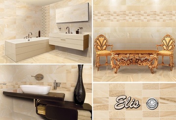 Баня Elis, произведена от фабрика Azulehos Plaza, Испания. Серията включва: Фаянс - 20x60см; Декори - 20x60см; Теракота - 45 x 45см.